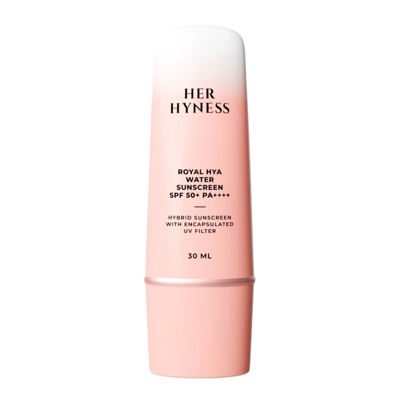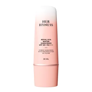 HER HYNESS Royal HYA Water Sunscreen SPF50+ PA++++ ครีมกันแดด SPF50+ ที่ให้ประสิทธิภาพทั้งการปกป้องและบำรุงผิวได้ในขวดเดียว ปกป้องได้ตั้งแต่รังสี UVA, UVB และแสงสีฟ้า พร้อมบำรุงผิวให้เนียนนุ่มชุ่มชื้น แลดูเรียบเนียนและกระชับ ผ่านการทดสอบการระคายเคือง ไม่ก่อให้เกิดการอุดตันผิว เนื้อผลิตภัณฑ์เป็นสูตร Water-Based ทำให้กันแดดแนบผิวมากยิ่งขึ้น