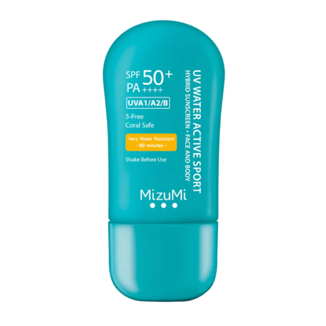 MizuMi UV Water Active Sport SPF50+ PA++++ ครีมกันแดดสูตรกันน้ำกันเหงื่อ มาพร้อมค่าการป้องกันแสงแดดสูงสุดที่ SPF50+ เนื้อผลิตภัณฑ์เป็นแบบ Fluid Serum ให้สัมผัสที่บางเบา ซึมลงผิวได้ไว สามารถกันน้ำกันเหงื่อได้สูงสุดที่ 80 นาที ปราศจากสารก่อให้เกิดการระคายทั้งบนผิวหน้าและรอบดวงตา