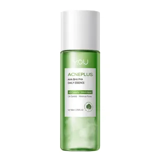Y.O.U AcnePlus AHA BHA PHA Daily Essence น้ำตบ AHA BHA ที่มีส่วนช่วยในการผลัดเซลล์ผิวอย่างอ่อนโยน พร้อมช่วยปลอบประโลมผิวได้ในขั้นตอนเดียว มาพร้อมกับสารสกัด Witch Hazel และ 4D Centella ช่วยให้รูขุมขนแลดูกระชับมากขึ้น และยังช่วยดูแลปัญหาสิวบนผิวหน้า ทำให้เผยผิวหน้าแลดูเรียบเนียน สุขภาพดี และมีชีวิตชีวา