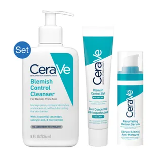 Cerave Blemish Set ครีม AHA BHA ที่มาในรูปแบบเซ็ตผลิตภัณฑ์ดูแลผิวหน้า ประกอบไปด้วย Cerave Blemish Control Cleanser, Cerave Blemish Control Gel และ Cerave Resurfacing Retinol Serum เหมาะกับผู้ที่มีผิวเป็นสิวง่าย มีความอ่อนโยนสูง ปราศจากสารก่อให้แพ้ต่างๆ อุดมไปด้วยสาร AHA และ BHA ในรูปแบบของกรดซาลิไซลิก มีส่วนช่วยในการสร้างปราการผิว (Skin Barrier) ให้แข็งแรง พร้อมลดเลือนรอยดำจากสิวให้แลดูจางลง เผยผิวที่ดูเรียบเนียนสม่ำเสมอ