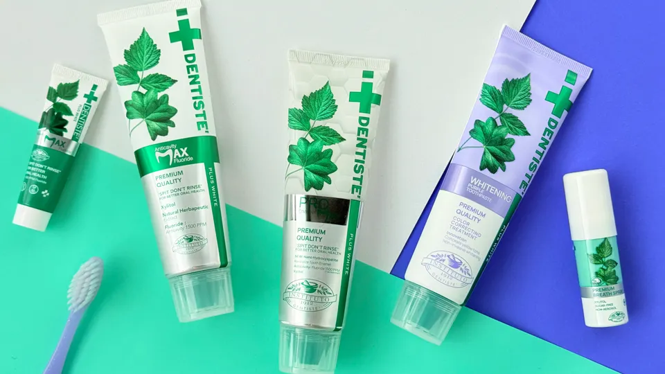 Dentiste’ Max Toothpaste ยาสีฟันสูตรแปรงแห้ง ที่ออกแบบมาให้เป็นตัวช่วยดูแลปัญหาช่องปาก ไม่ว่าจะเป็นฟันผุและกลิ่นปากไม่พึงประสงค์ โดยยาสีฟันสูตรนี้อุดมไปด้วยสารสกัดจากธรรมชาติมากถึง 14 ชนิด เช่น มินต์ ยูคาลิปตัส คาโมมายล์ และเซจ ช่วยดูแลสุขภาพช่องปากอย่างครบถ้วน นอกจากนี้ยังอุดมไปด้วยฟลูออไรด์มากถึง 1,500 PPM ช่วยในการป้องกันฟันผุ และยังมี Remineralization เทคโนโลยีที่ช่วยคืนแร่ธาตุให้ผิวฟันดูสุขภาพดี อย่างเป็นธรรมชาติ