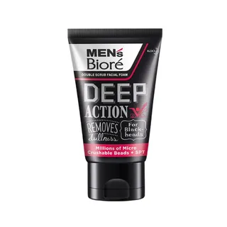 Biore Double Scrub Deep Action โฟมล้างหน้าสำหรับผู้ชายที่ผสมไมโครสครับ เนื้อโฟมเนียนนุ่ม เม็ดสครับมีขนาดเล็ก เพียงแค่นวดเบาๆ ก็แตกตัวละเอียด จึงไม่บาดผิวหน้า พร้อมช่วยขจัดความมันและสิ่งสกปรกบนผิวหน้า ช่วยป้องกันการเกิดสิวอุดตันและสิวหัวดำ