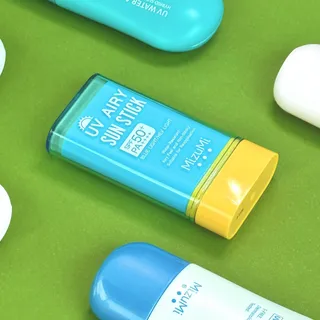 กันแดดแบบแท่ง MizuMi สูตร UV Airy Sun Stick SPF50+ PA++++ เป็นกันแดดอีกหนึ่งรูปแบบที่ช่วยเพิ่มความสะดวกสบายทั้งการใช้งานและการพกพา เนื้อกันแดดมีความบางเบา ไร้สี เมื่อทาลงผิวแล้วให้ฟินิชผิวแบบพาวเดอร์ มีส่วนช่วยในการคุมมัน สามารถกันน้ำกันเหงื่อได้สูงสุด 40 นาที ใช้ได้ทั้งบริเวณผิวหน้า ผิวกาย และรอบดวงตา
