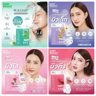 มาสก์ไฮโดรเจล Baby Bright มีราคาไม่แพงและคุณภาพดี มาในแผ่นมาสก์เนื้อเจลที่ยึดเกาะกับผิวหน้าได้ดี ให้สัมผัสเย็นสบายผิว และยังอุดมสารบำรุงผิวเข้มข้น มีให้เลือก 4 สูตร ดังนี้