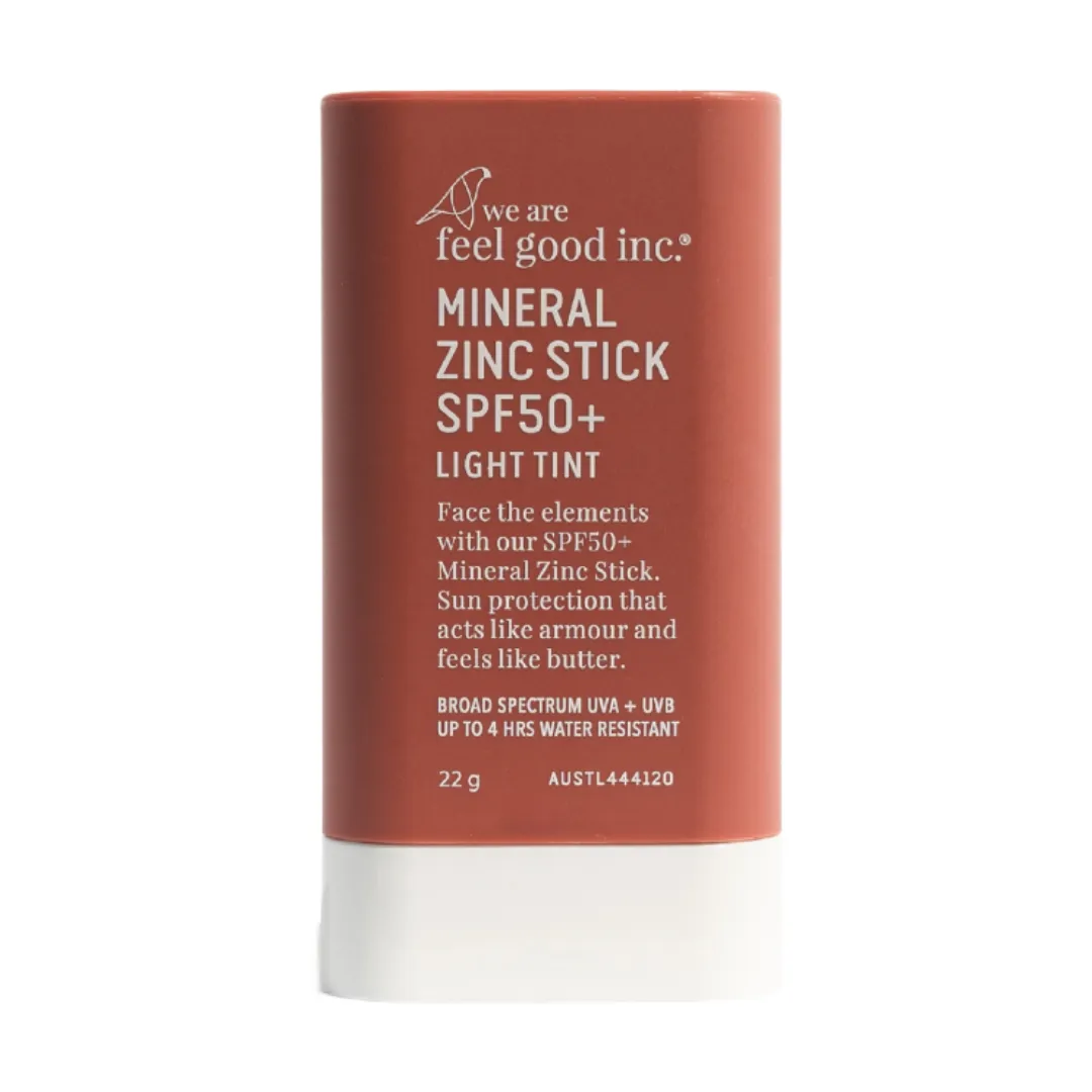 กันแดดสติ๊กอีกหนึ่งยี่ห้ออย่าง We Are Feel Good Inc Mineral Zinc Stick SPF50+ มาพร้อมกับสาร Zinc Oxide ที่ช่วยให้สารกันแดดมีประสิทธิภาพมากยิ่งขึ้น ปกป้องได้ทั้งรังสี UVA และ UVB เมื่อทาแล้วให้ความรู้สึกสบายผิว ไม่เหนียวเหนอะหนะ สามารถกันน้ำได้นานถึง 4 ชั่วโมง สามารถทาแล้วไปทำกิจกรรมทางน้ำหรืออื่นๆ ได้ มีให้เลือก 2 สี คือสีไลต์ และสีมีเดียม