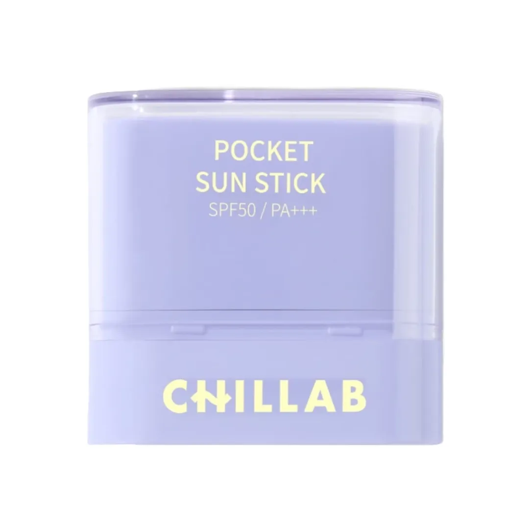 Chillab Pocket Sun Stick SPF50+ PA++++ กันแดดสติ๊กที่มาในรูปแบบกะทัดรัด พกพาได้ง่าย มีส่วนช่วยในการควบคุมความมันส่วนเกินบนใบหน้าและเบลอรูขุมขน ให้สัมผัสที่เบาสบายผิว เมื่อทาแล้วทำให้ผิวดูเรียบเนียน ไม่ทิ้งความมันเงา นอกจากนี้ยังอุดมไปด้วยสารบำรุงไม่ว่าจะเป็นสารสกัดใบบัวบก สควาเลน น้ำมันทีทรี และวิตามิน อี