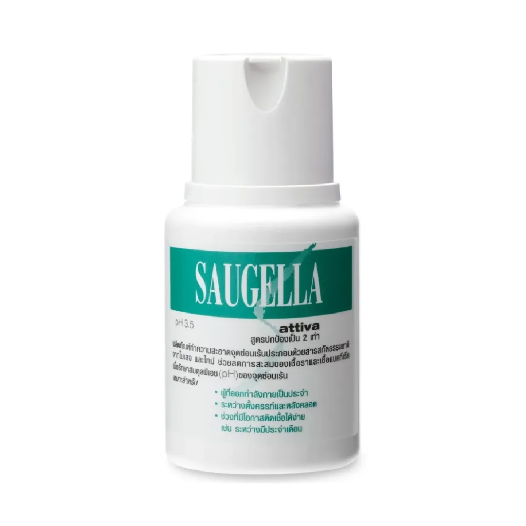 Saugella Attiva pH 3.5 น้ำยาล้างจุดซ่อนเร้นสูตรปกป้อง 2 เท่า มีส่วนผสมของสารสกัดจากใบเสจและไทม์ ช่วยลดการสะสมของเชื้อราและแบคทีเรีย ที่เป็นต้นเหตุของอาการคันระคายเคือง ทั้งยังมี Lactic Acid ช่วยรักษาสมดุลของค่า pH และ Alpha-Ketoglutaric Acid ลดปัญหากลิ่นอับบริเวณจุดซ่อนเร้น นอกจากนี้ ยังไม่มีส่วนผสมของน้ำหอม จึงสามารถใช้ได้ทุกวัน ทั้งเช้าและเย็น