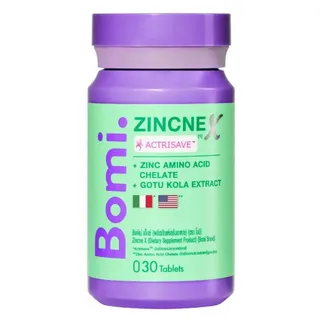 อาหารเสริม Zinc ยี่ห้อ Bomi สูตร Zincne X โดดเด่นด้วยคุณสมบัติในการช่วยดูปัญหาสิว ไม่ว่าจะเป็นสิวอักเสบหรือสิวอุดตัน มีส่วนช่วยคุมความมันส่วนเกินบนใบหน้า มาพร้อมสารสกัด Pricky Pear และข้าวสาลีสีนิล มีส่วนช่วยในการยับยั้งเอนไซม์ 5-Alpha Reductase ที่กระตุ้นการทำงานของต่อมไขมันลดลง ซิงก์มาในฟอร์ม Zinc Amino Acid Chelate ที่ดูดซึมได้ดีและเร็ว