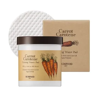 โทนเนอร์แพดแครอท สูตรยอดนิยมของแบรนด์ Skinfood โดดเด่นด้วยสารเบต้าแคโรทีน ที่สกัดจากน้ำมันเมล็ดแครอทออร์แกนิก ช่วยปลอบประโลมผิว พร้อมบำรุงผิวอย่างล้ำลึก มีส่วนช่วยให้ผิวแลดูเรียบเนียน แผ่นโทนเนอร์มาในลายวาฟเฟิล มีขนาดใหญ่และหนานุ่ม ลดการเสียดสีได้ดี และช่วยบำรุงผิวอย่างอ่อนโยน เหมาะสำหรับคนผิวแพ้ง่าย และคนที่ต้องการลดรอยแดงบนผิว