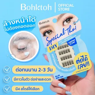 ขนตาปลอม Bohktoh รุ่นนี้เป็นขนตาแบบช่อมีกาวมาให้ในตัว เส้นขนตาผลิตจากเส้นผมสังเคราะห์เกรดพรีเมียม มีความนุ่มและเนียนไปกับขนตาจริง แกนขนตาเป็นแกนกาวเนื้อเจลสีดำ มีความนิ่ม ติดแล้วไม่ทำให้รู้สึกระคายเคือง และแนบสนิทไปกับโคนขนตา ขนตาปลอมรุ่นนี้สามารถโดนน้ำได้ จึงสามารถใช้ต่อขนตาแบบกึ่งถาวรได้ ติดนานสูงสุด 2-3 วัน โดยไม่ต้องถอดออก ทั้งนี้ ขึ้นอยู่กับการดูแลรักษาของแต่ละคน มีทรงขนตาให้เลือก 4 แบบ