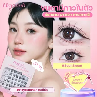 ขนตาปลอม HeyeLash มาเป็นแบบช่อมาพร้อมกาวในตัว สำหรับรุ่น SoulSweet เป็นรุ่นที่เน้นความเป็นธรรมชาติ และมีความบางเบา มาพร้อมแถบกาวขนาดเล็กเพียง 0.02 มม. ให้ความรู้สึกบางเบาและไม่ทำให้รู้สึกเคืองตา เส้นขนตายาว 10-13 มม. มาในทรง D-Curl ให้ฟินิชลุคตาหวานและดูกลมโตยิ่งขึ้น