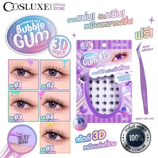 ขนตาปลอมรุ่นใหม่จาก COSLUXE รุ่นนี้โดดเด่นด้วยแกนขนตาที่มาพร้อมกาวในตัว ติดแน่นเหมือนหมากฝรั่ง และยังกันน้ำ กันเหงื่อ ไม่หลุดง่าย มาพร้อมเส้นขนตาแบบ 3D เรียงเส้นสวยเสมือนขนตาจริง และยังมีความโค้งงอน ช่วยให้ดวงตาดูกลมโต และดูมีเสน่ห์มากยิ่งขึ้น ขนตาปลอมมีให้เลือก 5 แบบ