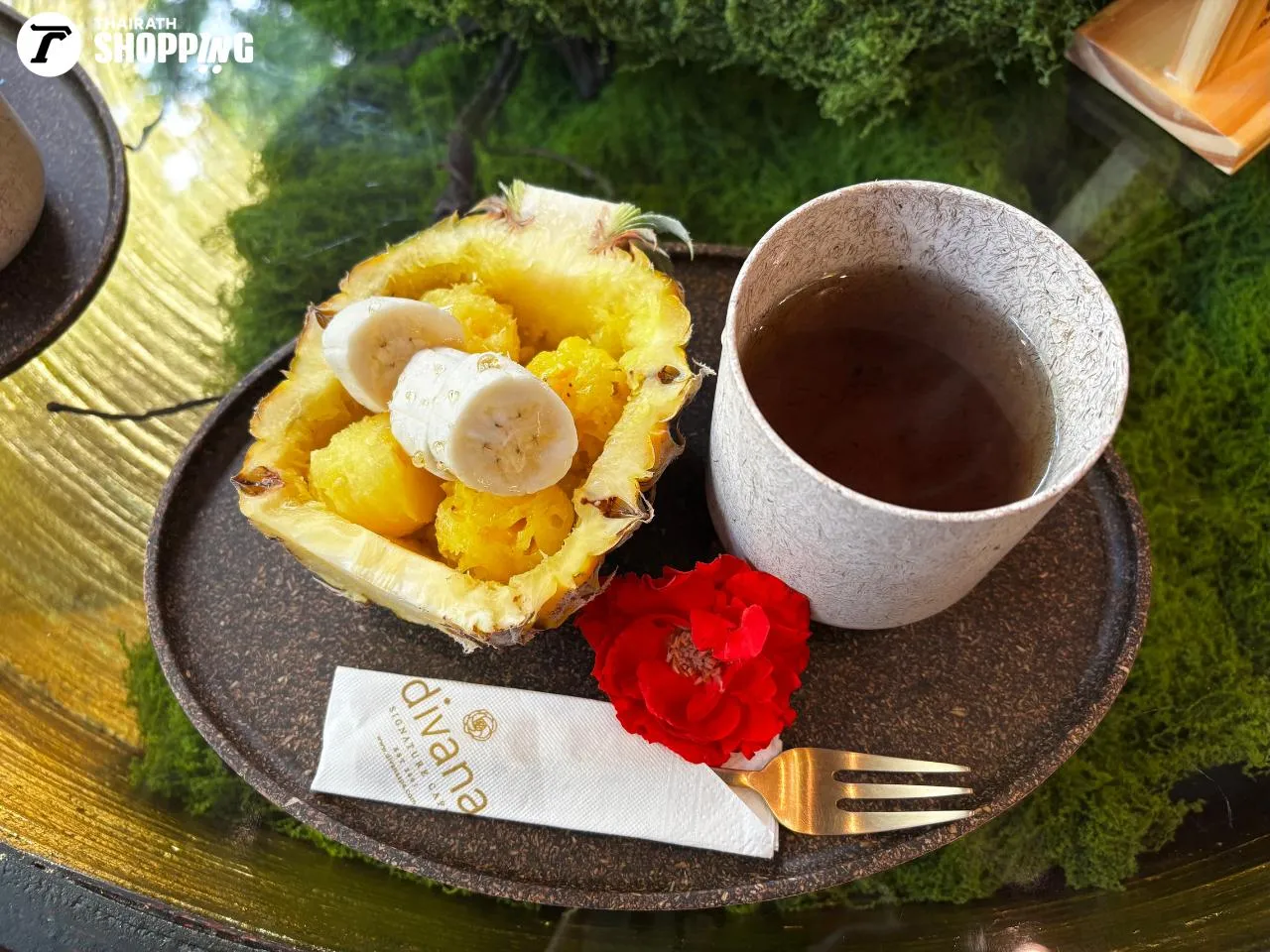 ประทับใจในตัวพนักงาน Divana Scentuara Spa ตั้งแต่พนักงานต้อนรับ ไปจนถึงพนักงานที่คอยดูแลตลอดการใช้บริการ และทางร้านจะมีผลไม้ประจำฤดูกาลกับชากุหลาบร้อนมาเสิร์ฟให้รับประทานก่อนกลับอีกด้วย