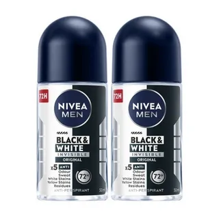 NIVEA Men Black&White Invisible Original โรลออนผู้ชายที่มาพร้อมนวัตกรรม Invisible ไม่ทิ้งคราบขาวบนเสื้อดำและไม่ทิ้งคราบเหลืองบนเสื้อขาว มีส่วนช่วยในการลดเหงื่อและลดกลิ่นไม่พึงประสงค์ได้ยาวนาน 72 ชม. ให้กลิ่นที่หอมละมุน สดชื่นตลอดวัน