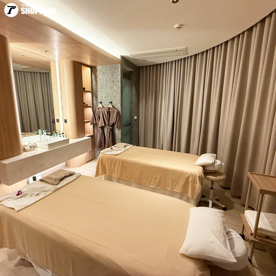ห้องนวดเป็นห้องส่วนตัว บรรยากาศภายในห้องเงียบสงบ มีเตียงเดี่ยว 2 เตียง พร้อมเสื้อผ้าสำหรับเปลี่ยน โดยพนักงานจะให้เวลาเปลี่ยนเสื้อผ้าและเตรียมตัวก่อนเริ่มนวดประมาณ 5 นาที
