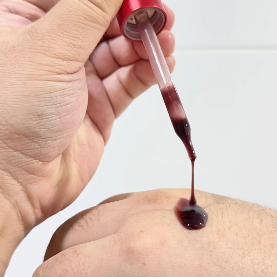 เนื้อผลิตภัณฑ์มาในรูปแบบเซรั่มสีแดงเข้ม มีความเหลวกำลังดี สามารถเกลี่ยลงบนผิวหน้าได้อย่างง่ายดาย ไม่ทำให้รู้สึกหนักผิว และยังมาพร้อมกลิ่นหอมอ่อนๆ จากสารสกัดที่ใส่มาให้ สามารถล้างออกได้ง่าย เมื่อล้างแล้วสีของผลิตภัณฑ์ไม่ติดบนผิวหน้า