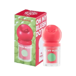 OH MY BLUSH DOT หรือบลัชหัวโต จาก 2P Original เป็นบลัชออนเนื้อน้ำที่มาพร้อมแพ็กเกจสุดน่ารัก สีสันคัลเลอร์ฟลู มีให้เลือกถึง 15 เฉดสี (รวมไฮไลต์และคอนทัวร์) ทั้งเนื้อแมตต์และเนื้อชิมเมอร์ ใช้แล้วแก้มดูเปล่งปลั่งกระจ่างใสด้วยส่วนผสมของ Diamond Powder เนื้อสัมผัสนุ่มลื่น บางเบา มีคุณสมบัติกันน้ำกันเหงื่อ ติดทนนานสูงสุด 12 ชั่วโมง เนื้อเกลี่ยง่าย ตอบโจทย์ทั้งการเบลนด์ด้วยนิ้วมือและพัฟมาร์ชเมลโล่วที่แถมมาในกล่อง หัวแปรงเป็นฟองน้ำถูกออกแบบมาให้ใช้งานง่าย