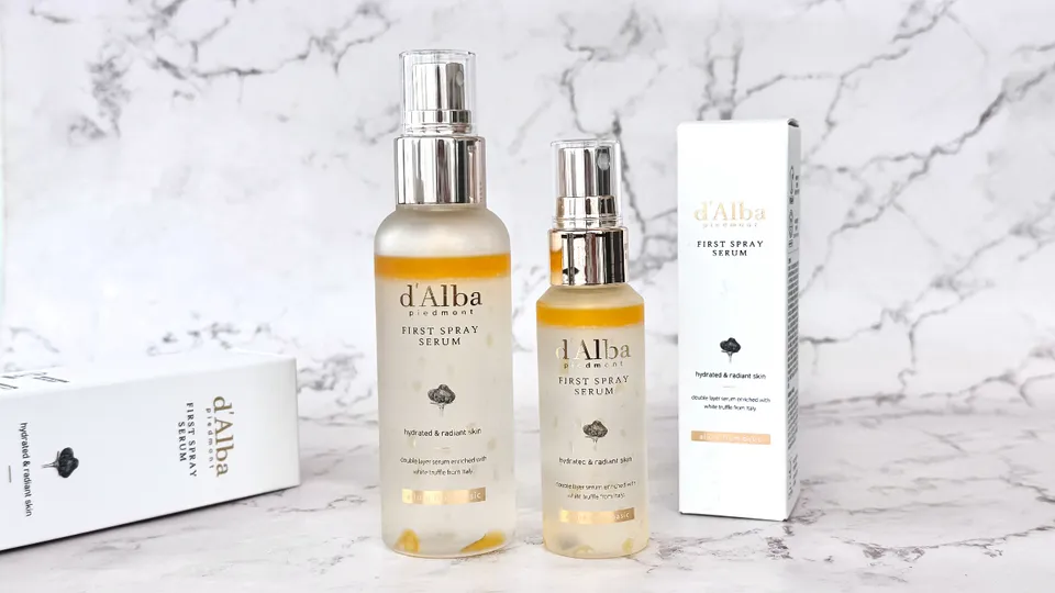 d'Alba White Truffle First Spray Serum สเปรย์ตัวดังที่กำลังได้รับความนิยมในประเทศไทยและเกาหลีใต้ เป็นสเปรย์เซรั่มที่มียอดขายอันดับ 1 ใน Olive Young มีสารสกัดจากเห็ดไวท์ทรัฟเฟิล (White Truffle Extract) นำเข้าจากแคว้นพีดมอนต์ ประเทศอิตาลีเป็นส่วนผสมหลัก ผสานไนอะซินาไมด์ และน้ำมันอะโวคาโด มีส่วนช่วยเติมเต็มและกักเก็บความชุ่มชื้นไว้บนผิว พร้อมเสริมความยืดหยุ่นและช่วยให้ผิวฉ่ำโกลว์ เปล่งปลั่ง แลดูสุขภาพดีหลังสเปรย์
