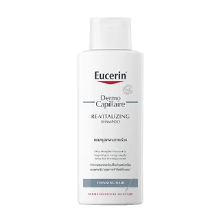 แชมพูลดผมร่วง Eucerin DermoCapillaire Re-Vitalizing Shampoo มีส่วนช่วยลดปัญหาผมบางขาดหลุดร่วงตั้งแต่ต้นเหตุ ด้วยส่วนประกอบของ Licochalcone A, Carnitine และ Creatine ที่มีส่วนช่วยฟื้นบำรุงหนังศีรษะ ลดการระคายเคืองจากสิ่งตกค้างที่เป็นต้นเหตุของปัญหาผมขาดหลุดร่วง บำรุงเส้นผมให้มีสุขภาพดีตั้งแต่โคนผม ผมดูหนาขึ้น นุ่มสลวย และไม่เปราะขาดง่าย