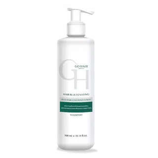 แชมพูลดผมร่วง GO HAIR Hair Rejuvenating Shampoo มีส่วนช่วยปรับสมดุลบนหนังศีรษะ ลดความมัน ชะลอการขาดหลุดร่วงของเส้นผม พร้อมคืนความแข็งแรงและทำให้เส้นผมเกิดใหม่ดกดำนุ่มสลวย ด้วยส่วนประกอบของบอระเพ็ด, สารสกัดจากทองพันชั่ง, น้ำดอกกุหลาบดามัสกัส, สารสกัดจากผลประคำดีควาย และวิตามินบี 5 เหมาะสำหรับผู้ที่มีปัญหาผมขาดหลุดร่วงง่าย