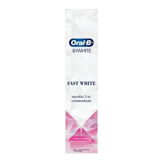 Oral-B 3D White Fast White ยาสีฟันสูตรอัปเกรดฟลูออไรด์ มาพร้อมฟลูออไรด์ 1,450 ppm และเทคโนโลยี Advanced Micro Polishers ช่วยขจัดคราบพลัค ปกป้องผิวเคลือบฟัน และป้องกันไม่ให้ฟันผุ นอกจากนี้ยังมีอนุภาคไวท์เทนนิ่งกว่าล้านโมเลกุล ช่วยขจัดคราบให้ฟันแลดูขาวมากยิ่งขึ้นอีกด้วย