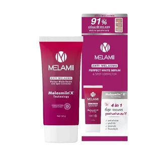 ครีมทาฝ้า Melamii โดดเด่นด้วยเทคโนโลยี MelasmiinX ช่วยยับยั้งการเกิดฝ้าใหม่ ลดเลือนฝ้าเก่า และป้องกันการกลับมาเป็นซ้ำ ทำให้ผิวดูกระจ่างใสและเรียบเนียนขึ้น พร้อมส่วนผสมของ Niacinamide และ Hyaluron 8 โมเลกุลช่วยบำรุงผิวหน้าให้แข็งแรง ชุ่มชื้น และยืดหยุ่น