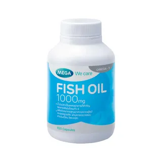 ผลิตภัณฑ์น้ำมันปลา MEGA We care ในหนึ่งแคปซูลประกอบไปด้วยน้ำมันปลา 1,000 มก. อุดมไปด้วยกรดไขมันกลุ่มโอเมก้า-3 คือ EPA, DHA และยังมีวิตามินอี มาในรูปแบบเม็ดซอฟต์เจล กินง่าย