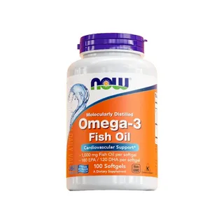 NOW FOODS Omega 3 Fish Oil ผลิตภัณฑ์น้ำมันปลานำเข้าจากประเทศสหรัฐอเมริกา ประกอบไปด้วยน้ำมันปลาเข้มข้น 1,000 มก. ให้ปริมาณ EPA 180 มก. และ DHA 120 มก. ต่อหนึ่งเม็ด มาในรูปแบบของเม็ดซอฟต์เจล ขนาด 26 มม.