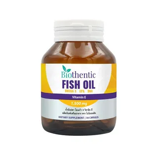 Biothentic Fish Oil ประกอบไปด้วย น้ำมันปลา 1,000 มก. ซึ่งให้ปริมาณ EPA 180 มก. และ DHA 120 มก. และยังมีส่วนประกอบของวิตามินอี มาในรูปเม็ดซอฟต์เจล