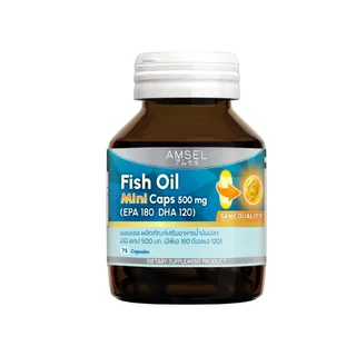 Amsel Fish Oil Mini Caps น้ำมันปลาขนาด 500 มก. มี EPA 180 มก. และ DHA 120 มก. มาในเม็ดซอฟต์เจลขนาดเล็ก กินง่าย เหมาะสำหรับผู้ที่ต้องการกินเสริมอาหารเพื่อดูแลสุขภาพ