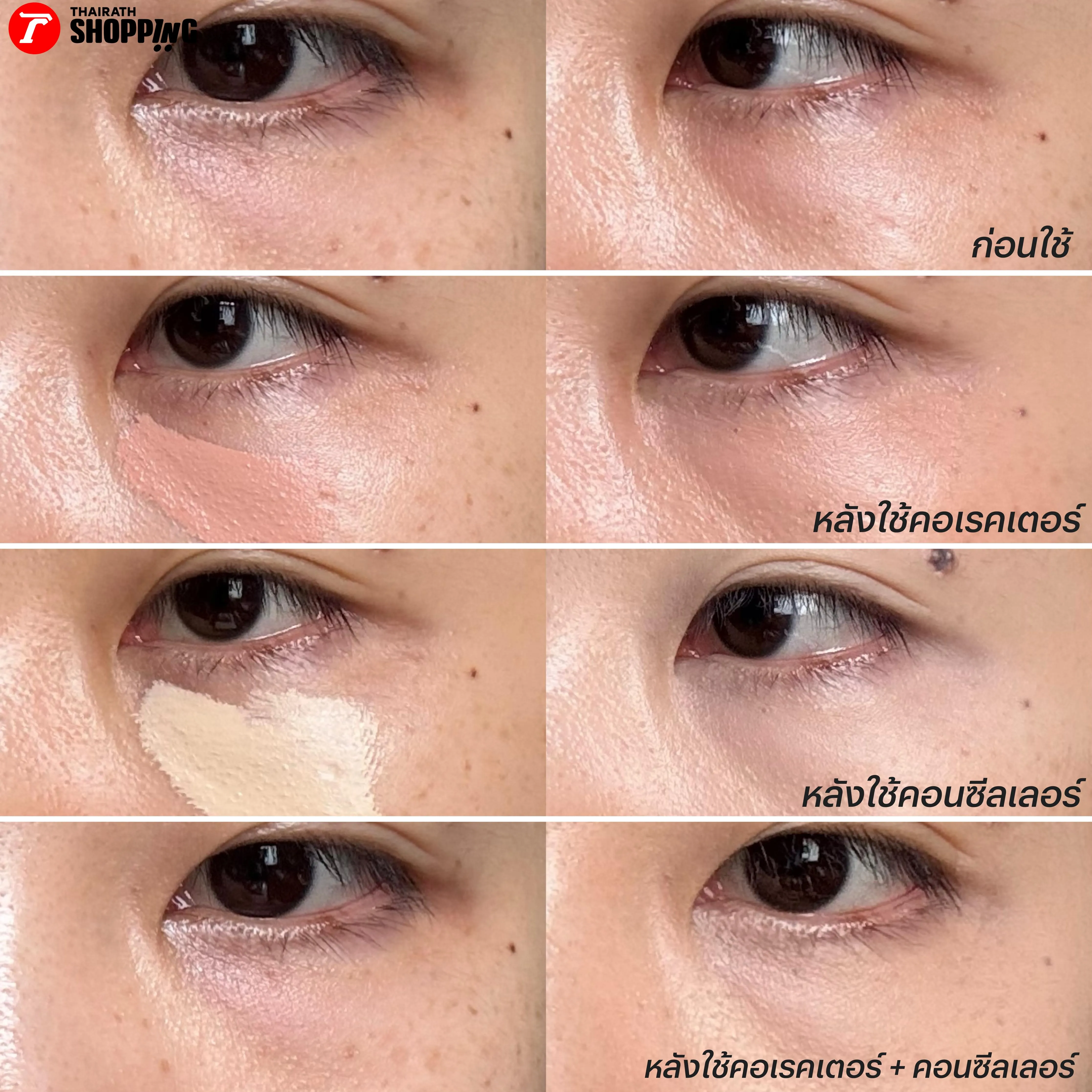 หมายเหตุ : ผู้รีวิวเป็นคนผิวผสม อันเดอร์โทนผิวขาวเหลือง ใช้คอนซีลเลอร์สี Light และคอเรคเตอร์สี Peach