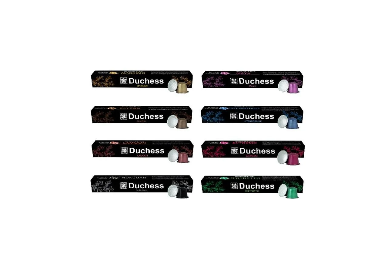 กาแฟแคปซูลจาก Duchess แบรนด์เครื่องชงกาแฟสัญชาติไทย กาแฟใช้เมล็ดอาราบิก้าและโรบัสต้า มีทั้งเมล็ดพันธ์ุที่ปลูกในไทยและเมล็ดกาแฟพรีเมียมจากต่างประเทศ มีความเข้มและความเปรี้ยวให้เลือกหลายระดับ รวมแล้วกว่า 15 รสชาติด้วยกัน