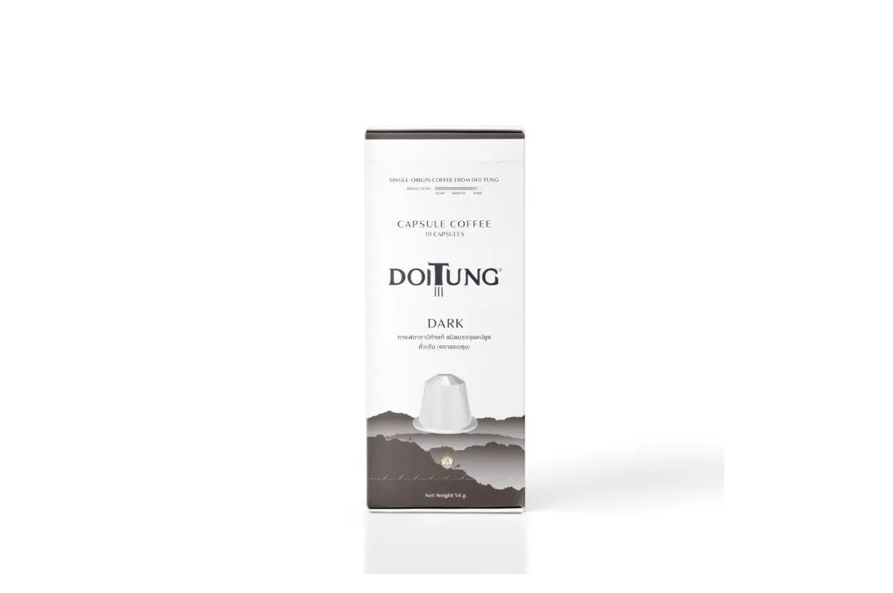 กาแฟแคปซูลจาก DoiTung ผลิตจากเมล็ดอาราบิก้า 100% จากโครงการพัฒนาดอยตุง รสชาติกาแฟกลมกล่อม มีให้เลือก 3 แบบด้วยกันคือ Medium กาแฟคั่วกลาง รสชาติหวานปลาย Dark กาแฟคั่วเข้ม รสชาติเข้มข้น ไม่ขมจนเกินไป พร้อมกลิ่นหอมจากช็อกโกแลต และ Extra กาแฟคั่วเข้มพิเศษ โทนดาร์กช็อกโกแลต ผสมผสานความหอมหวานจากคาราเมล