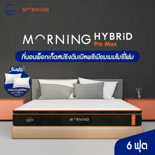 ที่นอน 6 ฟุต Morning Sleep รุ่น Hybrid Pro Max ที่นอนแบบไฮบริดที่ผสานความนุ่มสบายทั้งจากเตียงแบบ Pocket Spring และเตียงเมมโมรีโฟม รองรับสรีระตั้งแต่ช่วงหลังส่วนล่างไปจนถึงช่วงเอว ช่วยเติมส่วนโค้งของเอวจากการนอนให้อยู่ในแนวเดียวกัน ทำให้นอนหลับได้สบาย ไม่ปวดหลัง โครงสร้างมีทั้งหมด 6 ชั้น ได้แก่ Euro Top Max, Back Support CoolGel Memory Foam, CoolGel Memory Foam, Dynamic Support Foam, Responsive® 5 Zone Support Coils และ NanoBreeze Pad มีความหนามากถึง 10 นิ้ว
