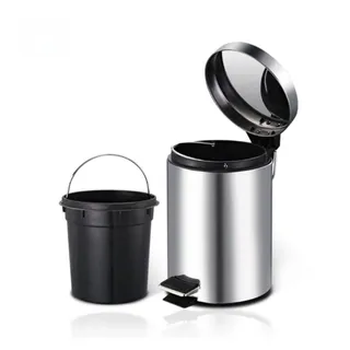 ถังขยะสเตนเลสทรงกลม สำหรับใช้ภายในบ้าน สีเงิน สวย ทน ไม่เป็นสนิมง่าย ด้านในมีตัวถังพลาสติกสีดำอีกชั้น พร้อมหูหิ้วแบบห่วง สามารถถอดยกถังออกมาเปลี่ยนถุงขยะด้านนอกได้อย่างสบาย หรือจะหิ้วทั้งถังเพื่อนำขยะไปเทใส่ถังอื่น แล้วรวบทิ้งทีเดียวก็ง่าย ช่วยลดการใช้ถุงขยะได้อีกด้วย มีความจุ 4 ขนาด ให้เลือก ได้แก่ ขนาด 5 ลิตร, 12 ลิตร, 20 ลิตร และ 30 ลิตร