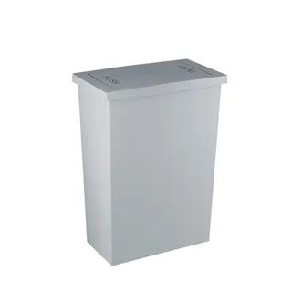 ถังขยะพลาสติกสีขาว ทรงสี่เหลี่ยมสูงขอบมน ขนาดกะทัดรัด ตัวฝาเปิดปิดแบบปุ่มกด pop-up ไร้เสียงรบกวน และสามารถถอดออกเพื่อเทขยะ หรือล้างทำความสะอาดได้ง่าย อีกทั้งยังมีตัวล็อกที่ขอบถัง ช่วยให้ฝาปิดได้สนิท กันน้ำ กันกลิ่นได้ดี มี 2 ขนาด คือ 11 ลิตร และ 15 ลิตร และเนื่องจากด้านในไม่มีตัวล็อกถุงใส่ขยะ ถังขยะรุ่นนี้ จึงตอบโจทย์สำหรับคนที่เน้นใช้งานแบบยกถังไปเทขยะทิ้งทีเดียวมากกว่า