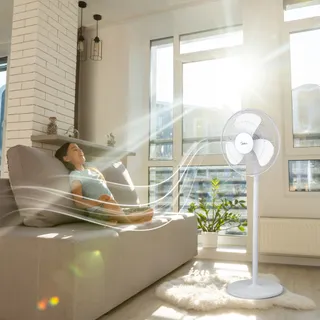 พัดลมดีไซน์มินิมอล สีขาว เรียบหรู เหมาะกับทุกมุมของบ้านจากแบรนด์ Midea สามารถปรับความแรงลมได้ 3 เบอร์ และปรับความสูงได้ 3 ระดับ มีปุ่มเปิด-ปิดแบบหมุนและสายไฟอยู่ด้านบน ช่วยป้องกันไฟช็อตจากน้ำ รวมถึงป้องกันอันตรายต่อเด็กและสัตว์เลี้ยง และตะแกรงด้านหน้าถอดประกอบง่าย จึงสามารถล้างทำความสะอาดได้บ่อยตามต้องการ