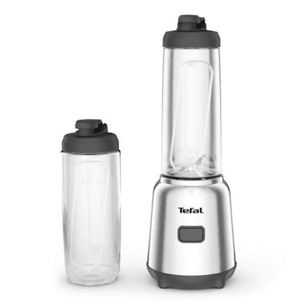 Tefal รุ่น MIX&MOVE MINI BLENDER BL15FD30 เครื่องปั่นน้ำผลไม้พกพาแบบกะทัดรัด ที่มีโถปั่นความจุ 0.6 ลิตร ให้ 2 โถ ใช้กำลังไฟในการปั่นที่ 300 วัตต์ สามารถปั่นได้ละเอียดตั้งแต่น้ำปั่นธรรมดา จนถึงน้ำปั่นแบบสมูตตี้ ฐานปั่นทำจากวัสดุโลหะ มีความทนทาน แข็งแรง ส่วนใบมีดทำจากสแตนเลสสตีล 4 แฉก มีความคมสูง ปั่นได้เร็ว ใช้งานง่ายในปุ่มเดียว