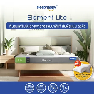 ที่นอนยางพารา SleepHappy รุ่น Element Lite ผลิตจากยางพาราแท้ที่นำไปสกัดโปรตีนออก ทำให้ได้ที่นอนที่มีความแน่นที่กำลังดี ยืดหยุ่น และคืนตัวไว ช่วยรองรับสรีระและจัดท่านอนให้อยู่ในท่าที่เหมาะสม ลดอาการปวดหลังจากออฟฟิศซินโดรม รวมถึงอาการปวดเมื่อยหลังตื่นนอนได้อีกด้วย นอกจากนี้ยังมี Charcoal Foam ช่วยลดการเกิดกลิ่นอับชื้นและกลิ่นไม่พึงประสงค์อีกด้วย