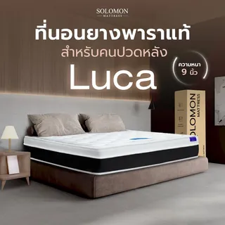 ที่นอนยางพารา Solomon รุ่น Luca ออกแบบมาสำหรับคนที่มีปัญหาปวดหลังเรื้อรัง ด้านในที่นอนประกอบไปด้วยวัสดุพรีเมียม ไม่ว่าจะเป็น ชั้นยางพาราแท้ ที่มีความยืดหยุ่นสูง รองรับสรีระได้ดี, ชั้น Cooling Gel ช่วยระบายอากาศได้ดี และชั้นฐานที่นอนที่ทำจากไม้ไผ่ธรรมชาติ ช่วยลดกลิ่นอับ ลดการสะสมของแบคทีเรีย และหุ้มที่นอนด้วยผ้าสัมผัสนุ่ม ไม่ระคายผิว นอนแล้วไม่รู้สึกร้อน
