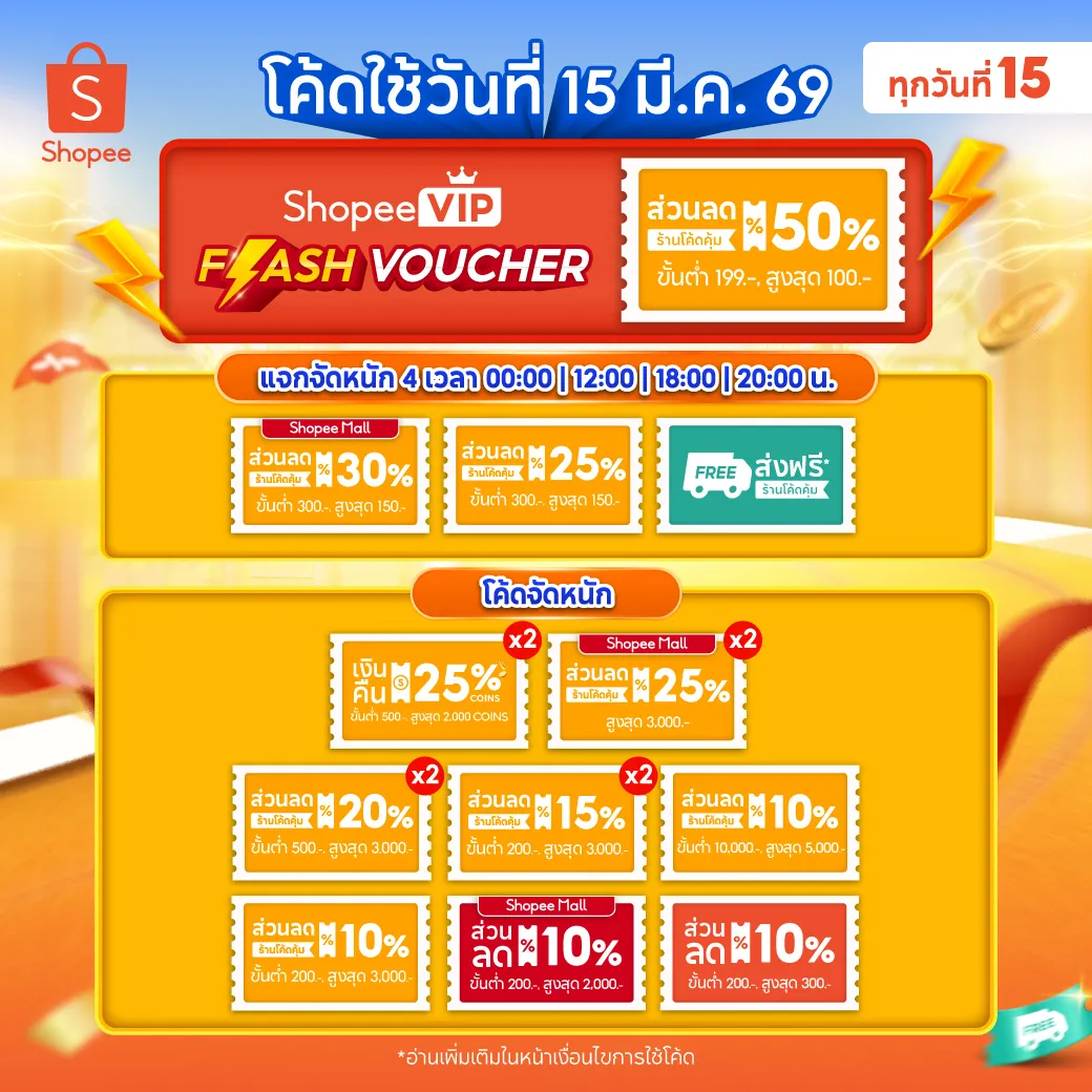 โค้ดส่วนลด Shopee Mid Month Sale เดือนมีนาคม 2569