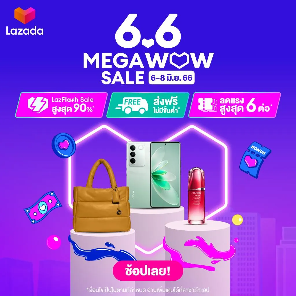 สำหรับ Lazada มาพร้อมโปรโมชัน 6.6 Lazada Mega Wow Sale เซลใหญ่สุดว้าว ช็อปมันส์กลางปี มีสินค้าจัดโปรโมชันราคาพิเศษ พร้อมใช้ส่วนลดได้สูงสุดถึง 6 ต่อเลยทีเดียว