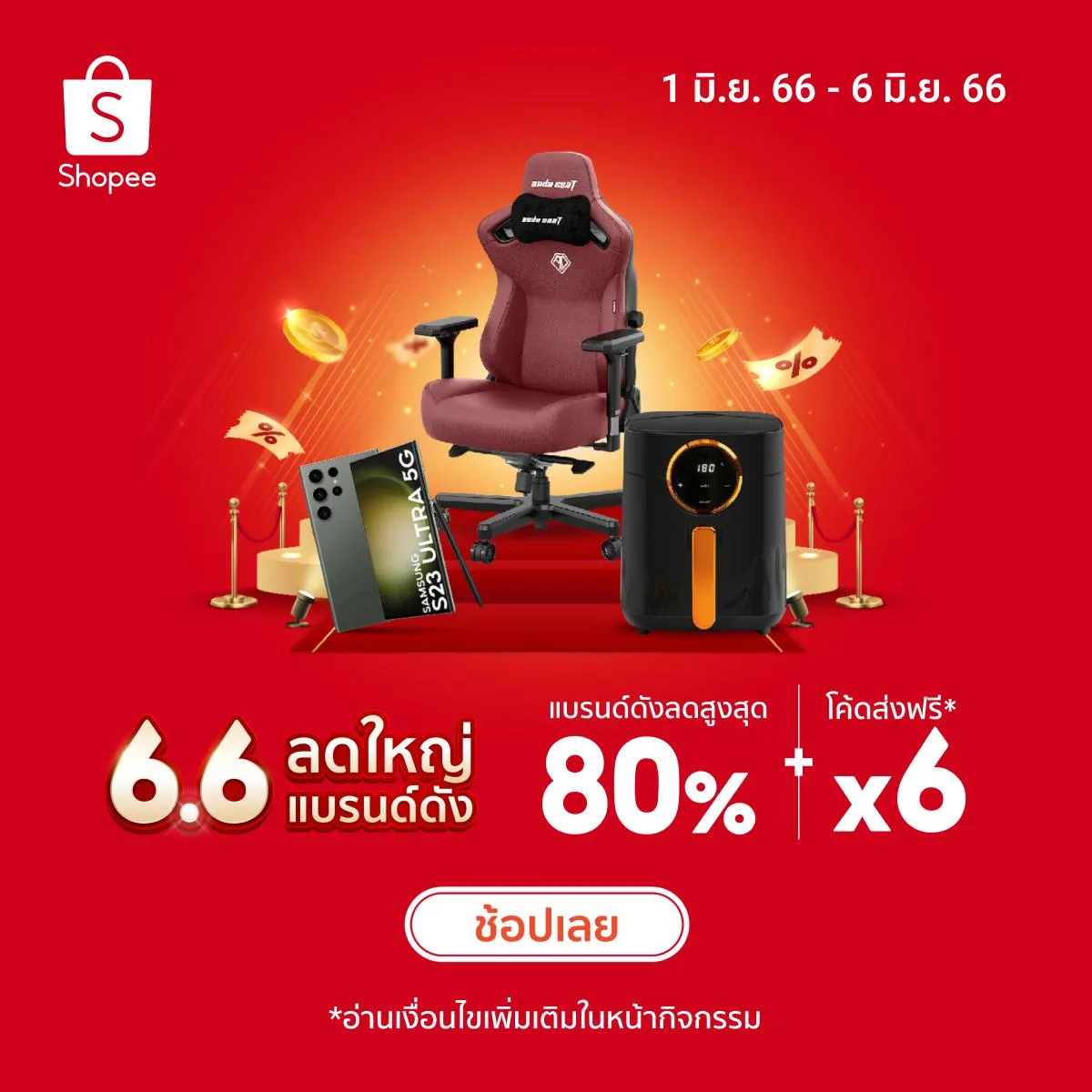 คูปองส่วนลดใช้ได้วันที่ 6 มิ.ย. 2566 กดเก็บคูปองส่วนลดผ่านแอป Shopee ที่นี่