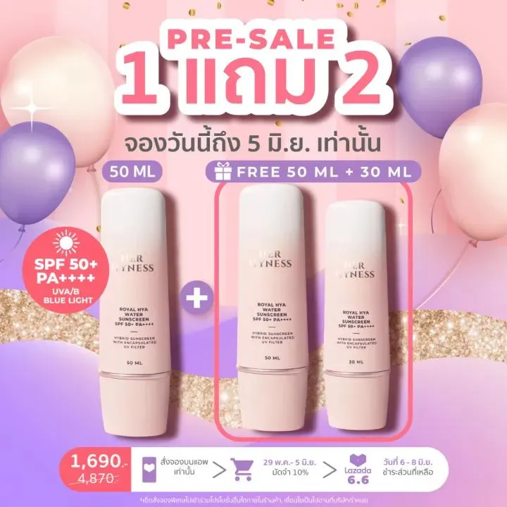 ซื้อครีมกันขนาด 50 ml. 1 ชิ้น แถมครีมกันแดดขนาด 50 ml. 1 ชิ้นและขนาด 30 ml. 1 ชิ้น ในราคา 1,690 บาท จากปกติ 4,870 บาท จ่ายมัดจำ 169 บาท จองและดูรายละเอียดสินค้าได้ที่นี่