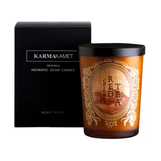 เทียนหอมจาก KARMAKAMET โดดเด่นด้วยกลิ่นหอมของน้ำมันอะโรมาเข้มข้นกว่า 12% มีให้เลือกทั้งหมดกว่า 20 กลิ่น ไม่ว่าจะเป็นกลิ่น Indian Jasmine, Tasmanian, Lavender, Night Lotus Flower และ Mimosa ขนาด 185 กรัม จุดได้นาน 50-60 ชั่วโมง ดีไซน์แก้วสวยงาม สามารถใช้เป็นของแต่งบ้านได้