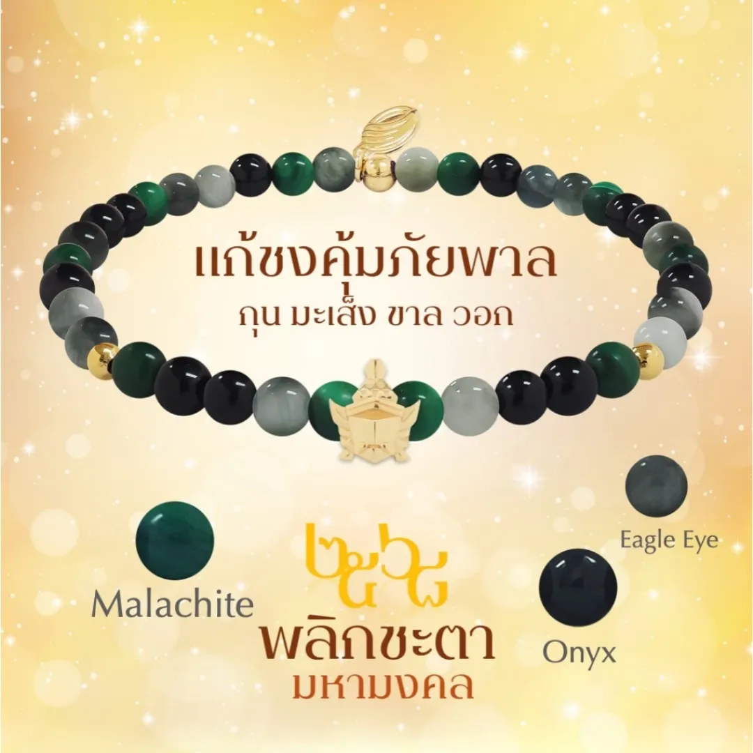 Rainbow Jewelry เซ็ตแก้ชง สร้อยข้อมือหินมงคลที่ออกแบบมาเพื่อคนเกิดปีชง 2568 นี้ มาในดีไซน์ที่มีความมินิมอล ทันสมัย และสามารถใส่ได้ทุกวัน ประกอบไปด้วยหินมงคล 3 ชนิด ได้แก่ Malachite, Onyx และ Eagle Eye ช่วยเสริมครบทั้งเรื่องความสำเร็จ ความก้าวหน้า และการปกป้องสิ่งไม่ดีต่างๆ และยังเสริมความศักดิ์สิทธิ์ด้วยจี้ท้าวเวสสุวรรณ ที่ช่วยเสริมในเรื่องอำนาจ ความมั่งคั่งและบารมีอีกด้วย