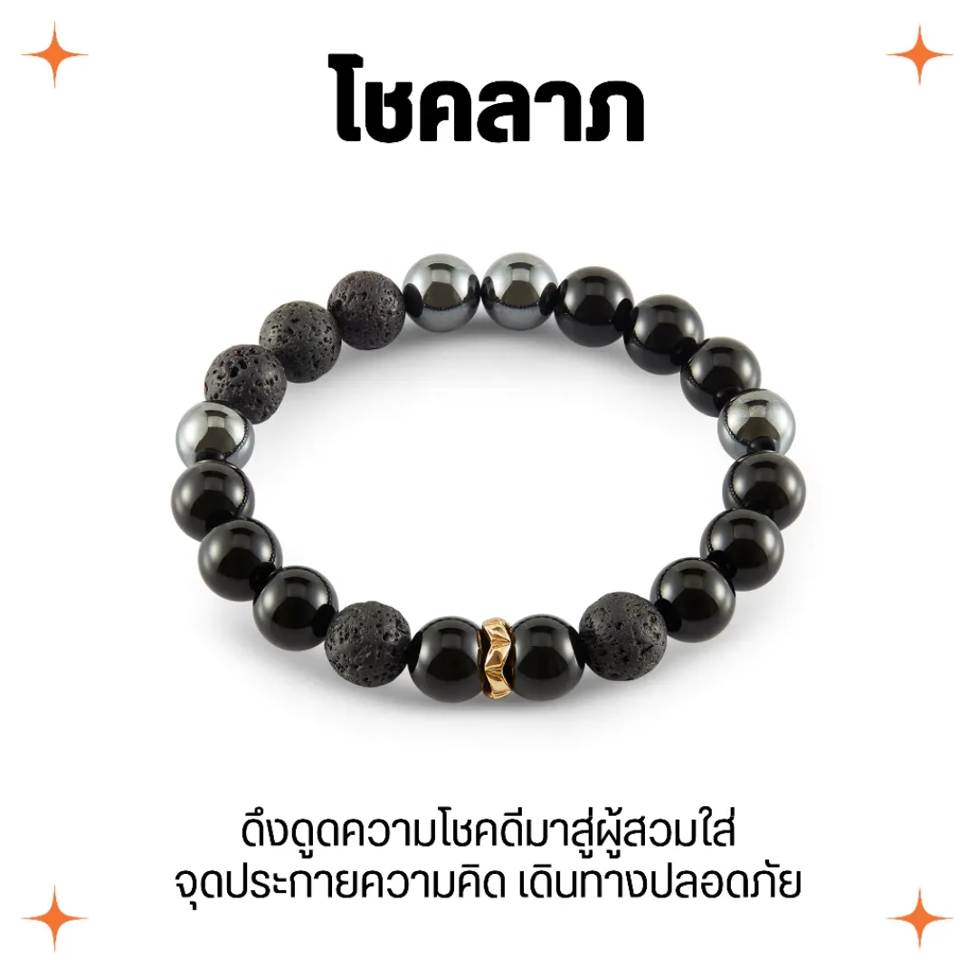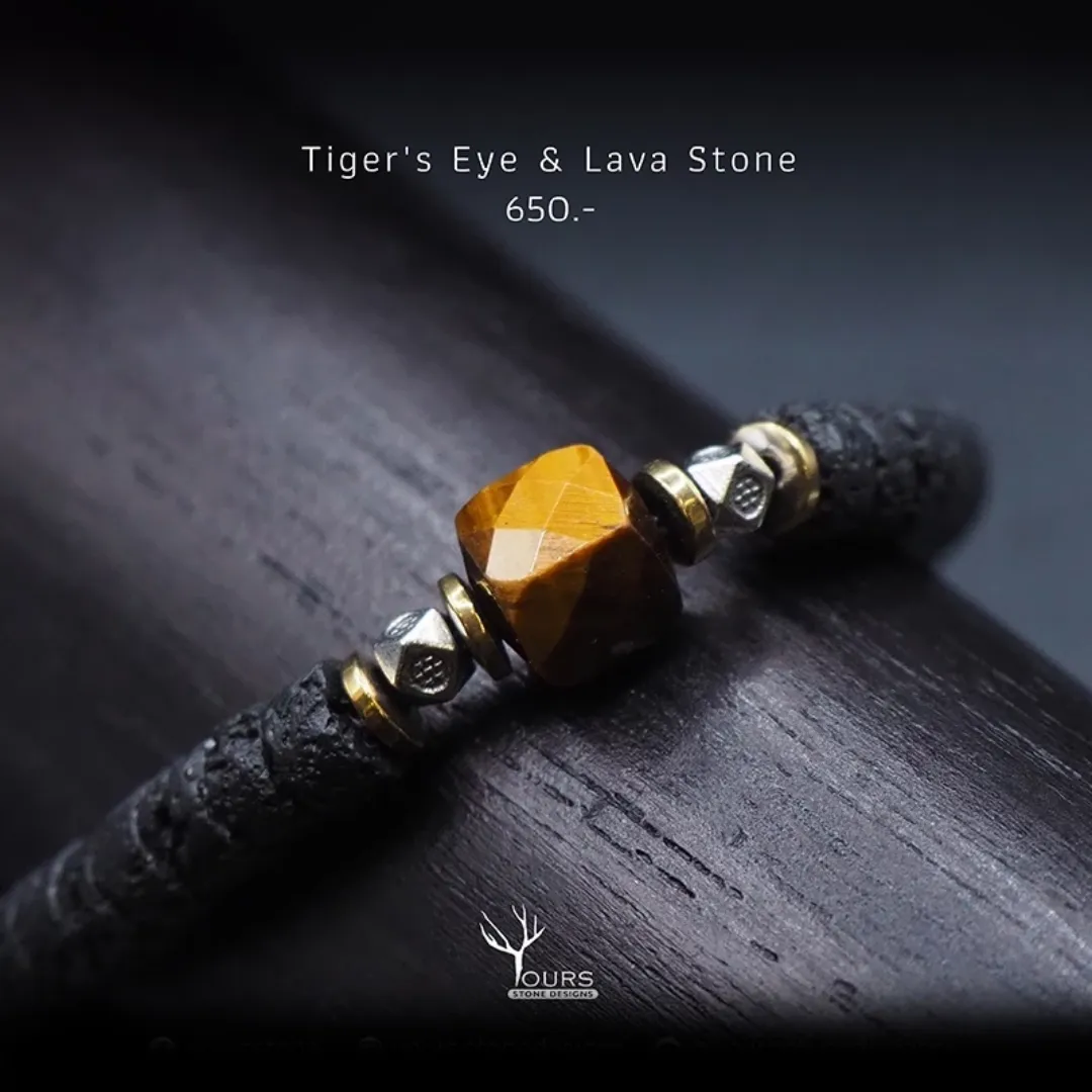 ปิดท้ายด้วยกำไลหิน ที่มาพร้อมกับหิน Tiger Eye เหมาะกับคนที่ต้องการเสริมดวงในเรื่องการงานและอำนาจวาสนา เพราะหินชนิดนี้นั้นมีความเชื่อว่าเป็นตัวแทนแห่งดวงจันทร์ ช่วยเสริมในเรื่องของอำนาจ ชื่อเสียง ความเจริญก้าวหน้าทั้งในชีวิตและการงาน นอกจากนี้ยังร้อยด้วยหิน Lava ที่เชื่อว่าช่วยเสริมในเรื่องของสุขภาพอีกด้วย