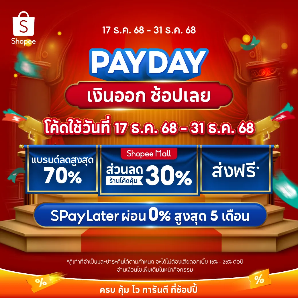 โปรโมชัน Shopee 12.25 Pay Day Sale มหกรรมลดราคาครั้งใหญ่ครั้งสุดท้ายของปี 2568 ใครที่กำลังมองหาของขวัญจับฉลาก ของขวัญปีใหม่ บอกเลยว่านี่คือโอกาสที่จะได้ช็อปสินค้าในราคาสุดคุ้ม เพราะ Shopee มีสินค้ามาให้เลือกช้อปแบบจุใจ แบรนด์แท้ลดสูงสุด 70% และโค้ดส่งฟรี* ขั้นต่ำ 0 บาท! พร้อมแจกโค้ดส่วนลดอีกมากมาย