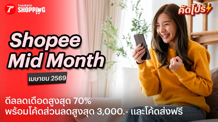 สงกรานต์นี้ช็อปอยู่บ้านชิลๆ กับโปรโมชัน Shopee 4.15 Mid Month Sale ครึ่งเดือน ครึ่งราคา มีสินค้าลดสูงสุดถึง 70% พร้อมแจกโค้ดส่วนลดมากมายลดสูงสุด 3,000 บาท พร้อมโค้ดส่วนลดส่งฟรี และผ่อนสินค้า 0%* สูงสุด 3 เดือน SPayLater เตรียมเก็บโค้ดส่วนลด และช็อปกันได้ในวันที่ 15 เม.ย. 69