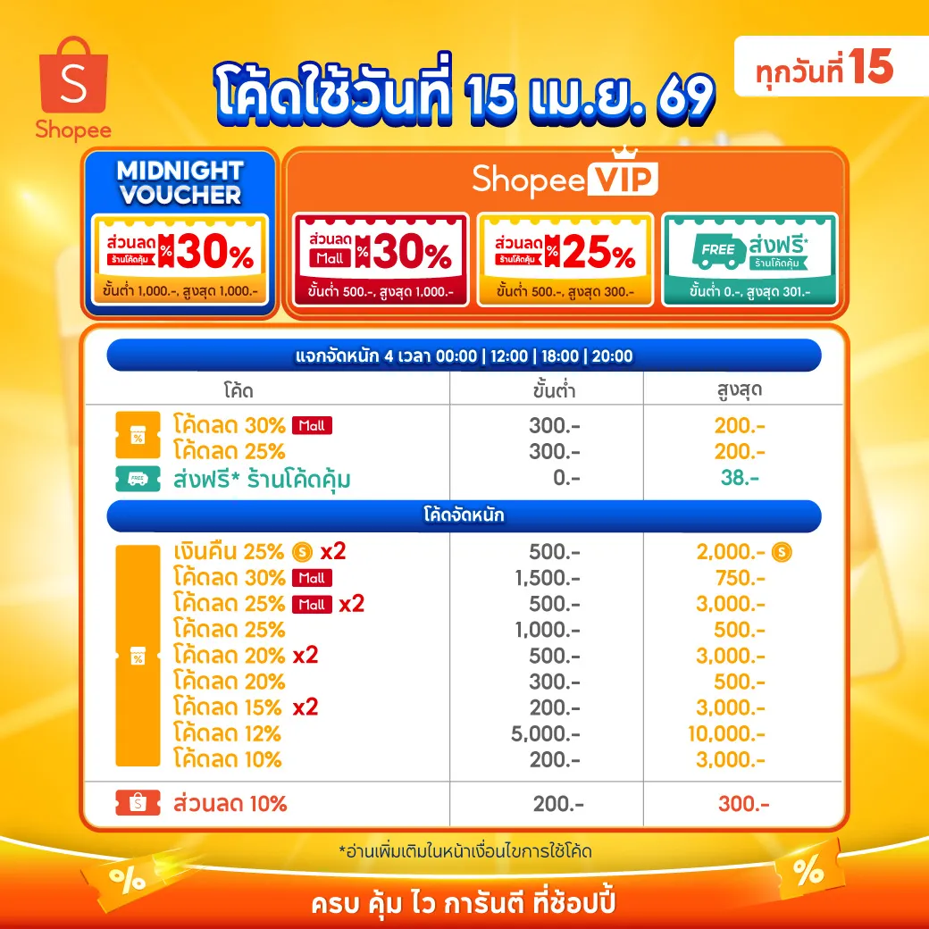 รวมโค้ดส่วนลดสุดคุ้ม Shopee 4.15 Mid Month Sale เดือนเมษายน 2569